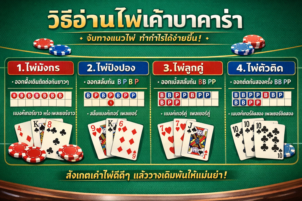ผมเล่นบาคาร่ามาหลายช่วงชีวิต ทั้งช่วงกำไรดี ช่วงเสียหนัก และช่วงที่เริ่ม “อ่านเกมออก” จริง ๆ จนเข้าใจว่า บาคาร่าแบบเข้าใจง่ายการอ่านไพ่เค้า ไม่ใช่การทายมั่ว แต่คือการสังเกตจังหวะของโต๊ะให้เป็น วันนี้ผมจะเล่าละเอียดแบบที่ผมใช้จริงเวลาเล่น เปรียบเทียบบาคาร่า vs เกมคาสิโนเพื่อให้คนที่อยากพัฒนาการดูเกม เข้าใจแบบเป็นขั้นเป็นตอน